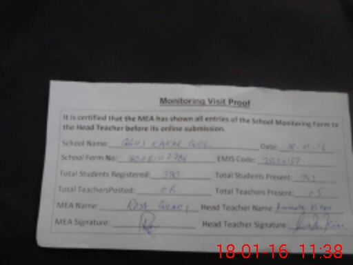 | Attendance Register | Head Teacher | MEA with School | Visit Proof |
