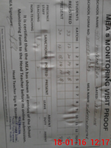 | Attendance Register | Head Teacher | MEA with School | Visit Proof |