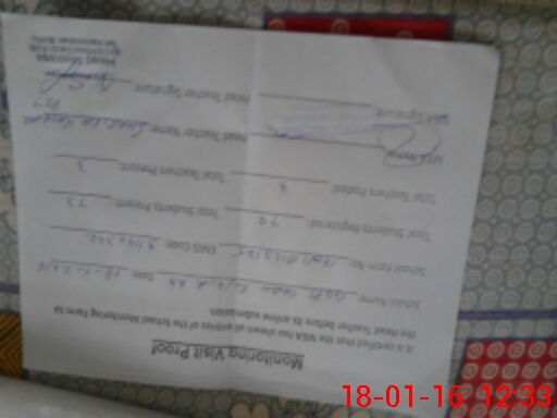| School Visited by School Health & Nutrition Supervisor (No. of Visits) | 1 | Name1: | Shazia Nasar | Name2: | Nil |