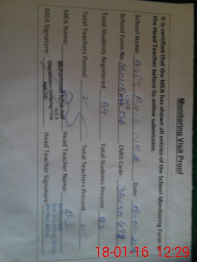 | Attendance Register | Head Teacher | MEA with School | Visit Proof |