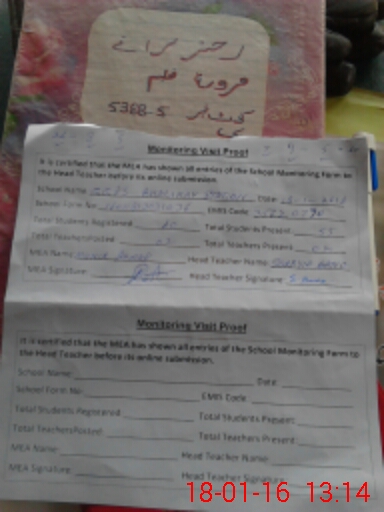 | Attendance Register | Head Teacher | MEA with School | Visit Proof |