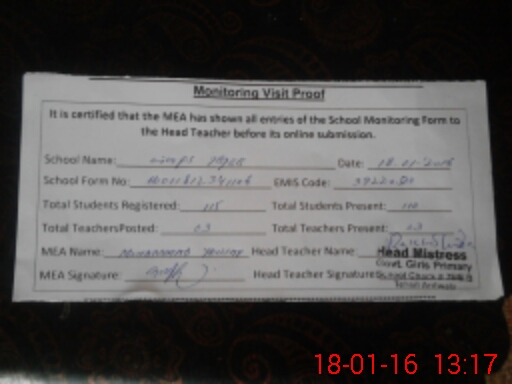 | Certified that this School was Inspected by the Undersigned MEA/DMO Today and the Information Stated Above is as Per Record. | |||||