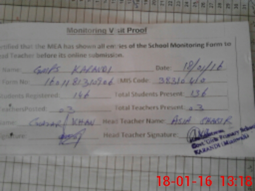 | EMIS Code: 38310410 | Name of School: GMPS KARANDI | |||