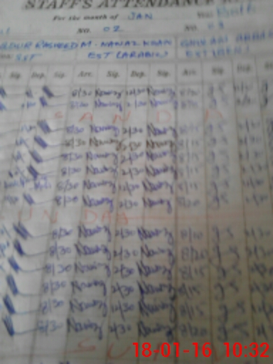 | CNIC | Full Name | Designation | R/C | Absence During Last Calender Month |