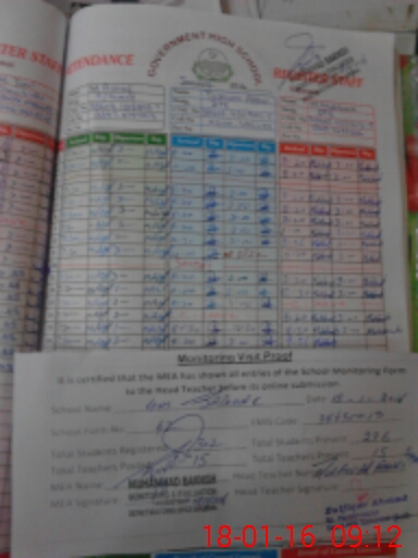 | Attendance Register | Head Teacher | MEA with School | Visit Proof |