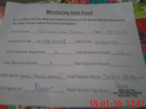 | Attendance Register | Head Teacher | MEA with School | Visit Proof |