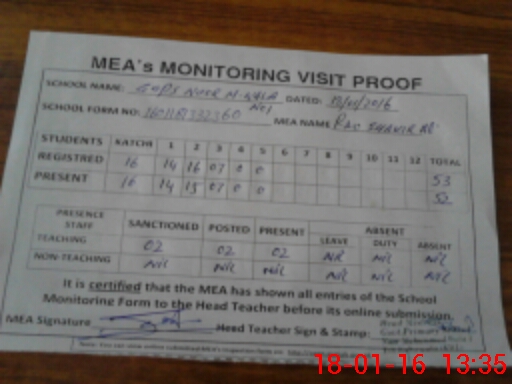 | Attendance Register | Head Teacher | MEA with School | Visit Proof |
