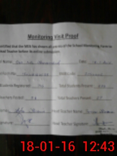 | Attendance Register | Head Teacher | MEA with School | Visit Proof |