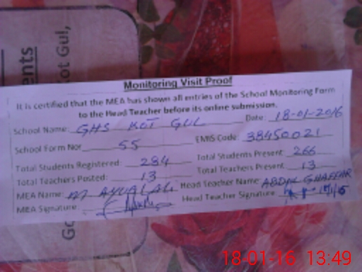 | EMIS Code: 38450021 | Name of School: GHS KOT GUL | |||