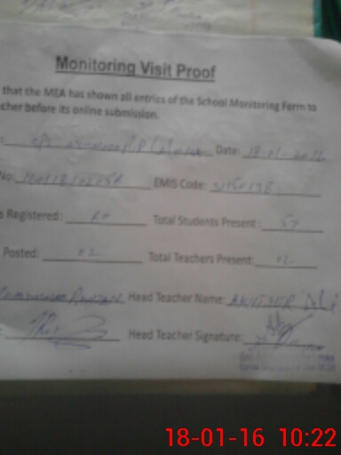| Attendance Register | Head Teacher | MEA with School | Visit Proof |