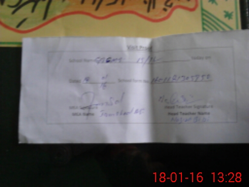 | School Visited by School Health & Nutrition Supervisor (No. of Visits) | 2 | Name1: | YASIR | Name2: | YASIR |