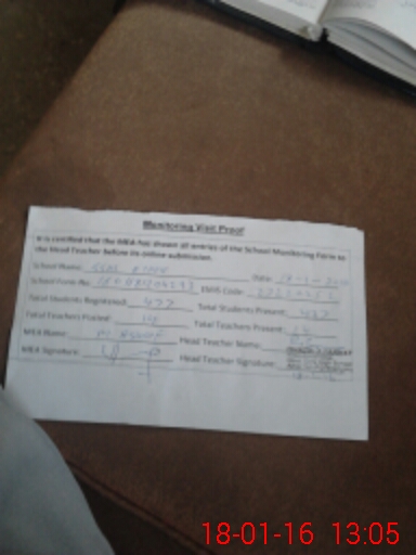 | Certified that this School was Inspected by the Undersigned MEA/DMO Today and the Information Stated Above is as Per Record. | |||||