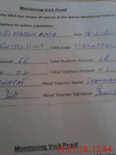 | Attendance Register | Head Teacher | MEA with School | Visit Proof |