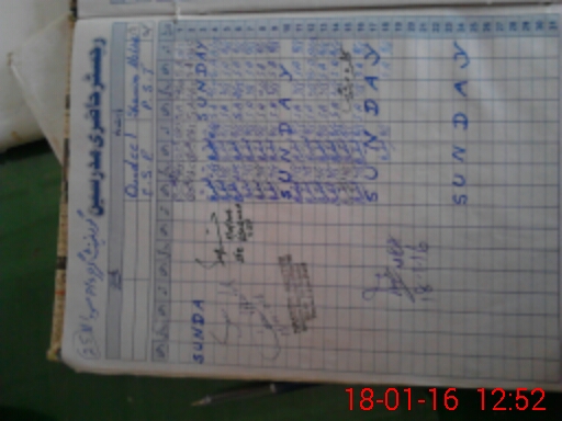 | CNIC | Full Name | Designation | R/C | Absence During Last Calender Month |