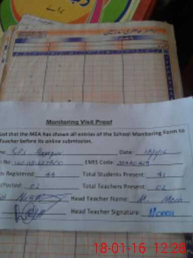 | Attendance Register | Head Teacher | MEA with School | Visit Proof |