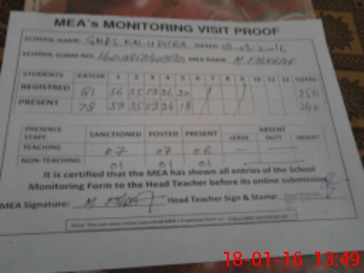 | Attendance Register | Head Teacher | MEA with School | Visit Proof |