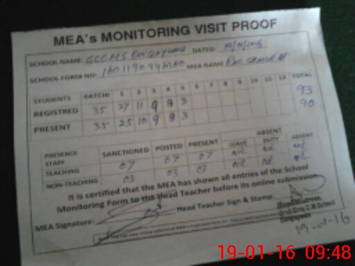 | Attendance Register | Head Teacher | MEA with School | Visit Proof |