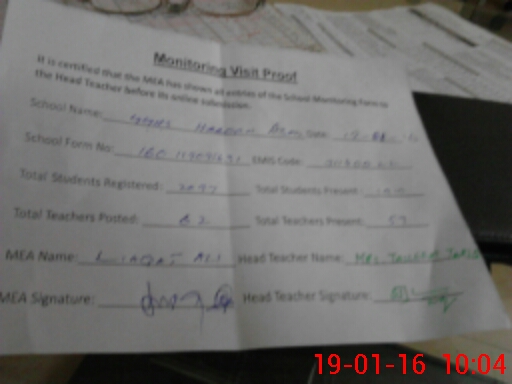 | Certified that this School was Inspected by the Undersigned MEA/DMO Today and the Information Stated Above is as Per Record. | |||||