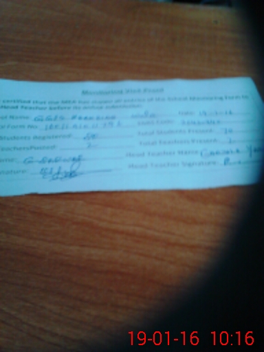 | Attendance Register | Head Teacher | MEA with School | Visit Proof |