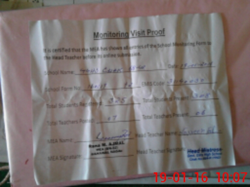 | Certified that this School was Inspected by the Undersigned MEA/DMO Today and the Information Stated Above is as Per Record. | |||||