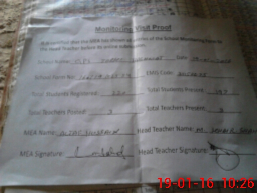 | Attendance Register | Head Teacher | MEA with School | Visit Proof |
