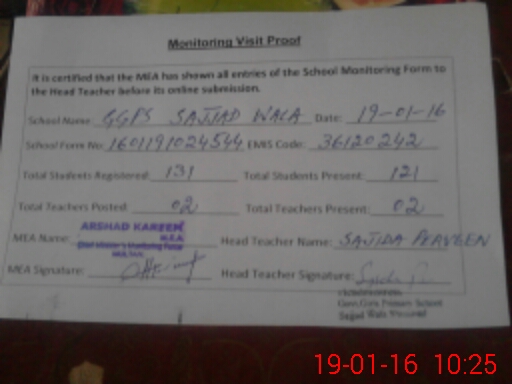 | EMIS Code: 36120242 | Name of School: GGPS SAJAD WALA SHUJABAD DISTT. MULTAN | |||
