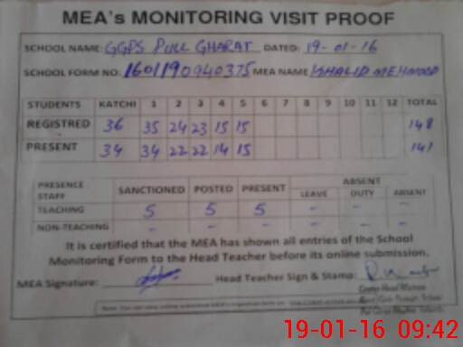 | Attendance Register | Head Teacher | MEA with School | Visit Proof |
