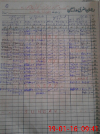 | CNIC | Full Name | Designation | R/C | Absence During Last Calender Month |