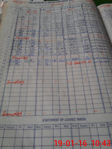 | CNIC | Full Name | Designation | R/C | Absence During Last Calender Month |