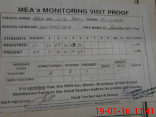 | Certified that this School was Inspected by the Undersigned MEA/DMO Today and the Information Stated Above is as Per Record. | |||||