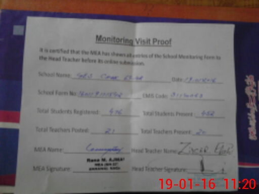 | Certified that this School was Inspected by the Undersigned MEA/DMO Today and the Information Stated Above is as Per Record. | |||||