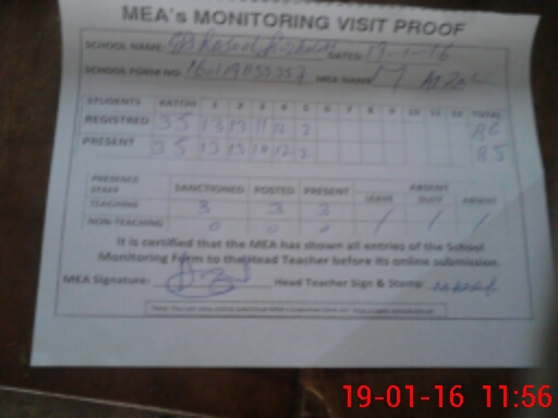 | Attendance Register | Head Teacher | MEA with School | Visit Proof |