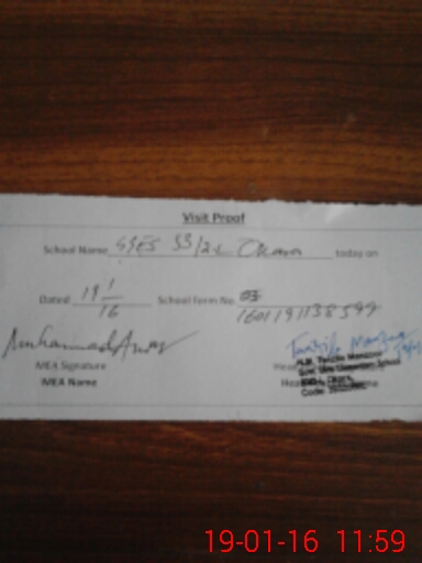 | School Visited by School Health & Nutrition Supervisor (No. of Visits) | 3 | Name1: | Abdul Sattar | Name2: | |