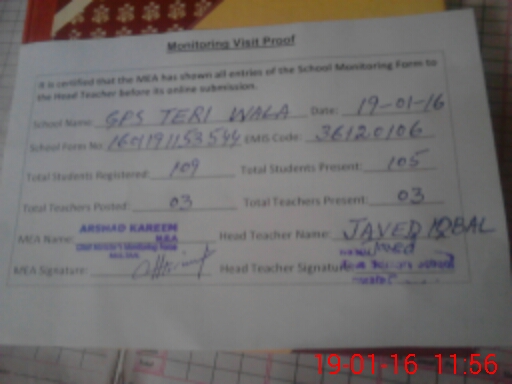 | EMIS Code: 36120106 | Name of School: GPS TERI WALA VILLAGE GANWEN SHUJABAD | |||