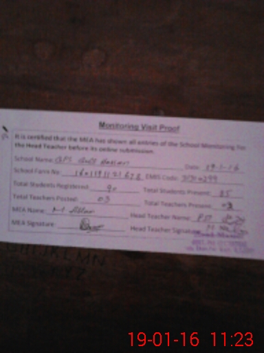 | Certified that this School was Inspected by the Undersigned MEA/DMO Today and the Information Stated Above is as Per Record. | |||||
