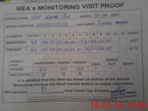 | EMIS Code: 36410020 | Name of School: GHS QATAL PUR, SARAI SIDHU | |||