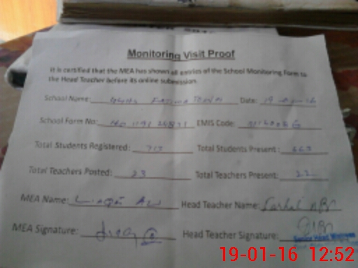 | Certified that this School was Inspected by the Undersigned MEA/DMO Today and the Information Stated Above is as Per Record. | |||||