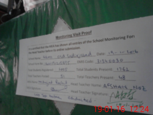 | Certified that this School was Inspected by the Undersigned MEA/DMO Today and the Information Stated Above is as Per Record. | |||||