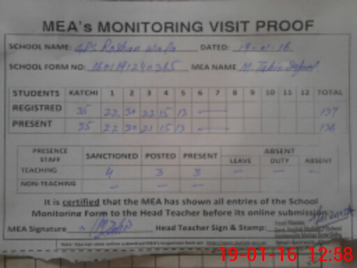 | Attendance Register | Head Teacher | MEA with School | Visit Proof |