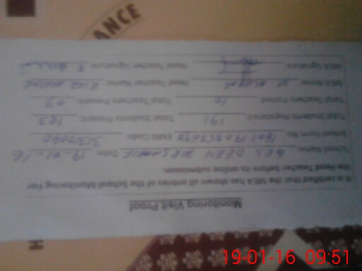 | Attendance Register | Head Teacher | MEA with School | Visit Proof |