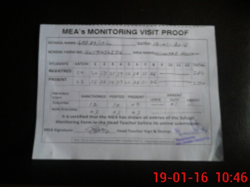 | Attendance Register | Head Teacher | MEA with School | Visit Proof |