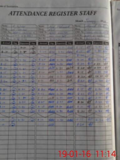 | CNIC | Full Name | Designation | R/C | Absence During Last Calender Month |