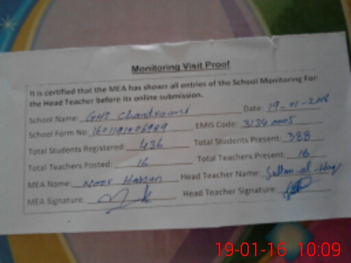 | Certified that this School was Inspected by the Undersigned MEA/DMO Today and the Information Stated Above is as Per Record. | |||||