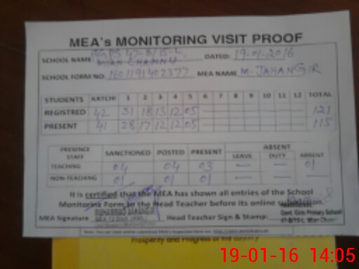 | Certified that this School was Inspected by the Undersigned MEA/DMO Today and the Information Stated Above is as Per Record. | |||||