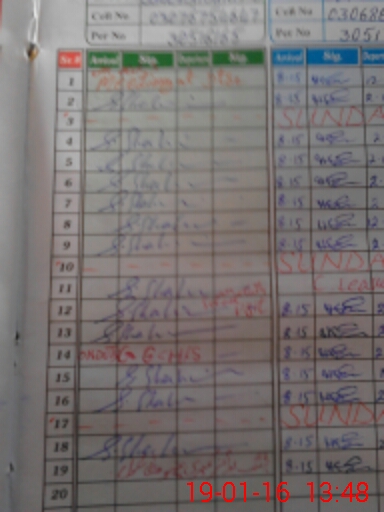 | CNIC | Full Name | Designation | R/C | Absence During Last Calender Month |
