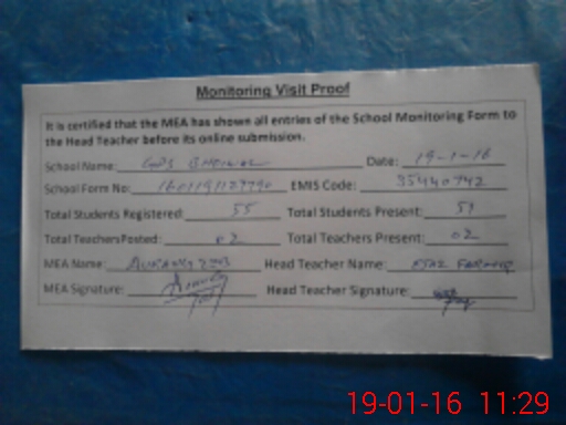 | Certified that this School was Inspected by the Undersigned MEA/DMO Today and the Information Stated Above is as Per Record. | |||||