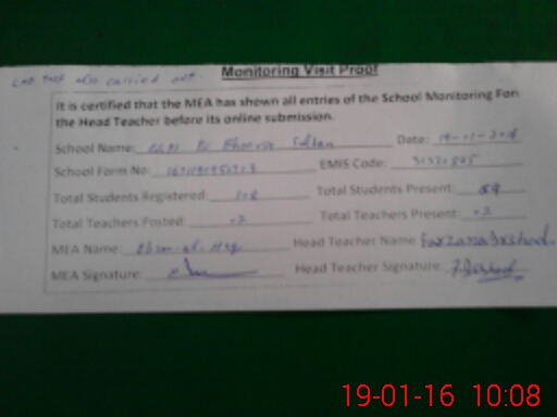 | EMIS Code: 31330845 | Name of School: GGPS PIR BHOORA SULTAN | |||