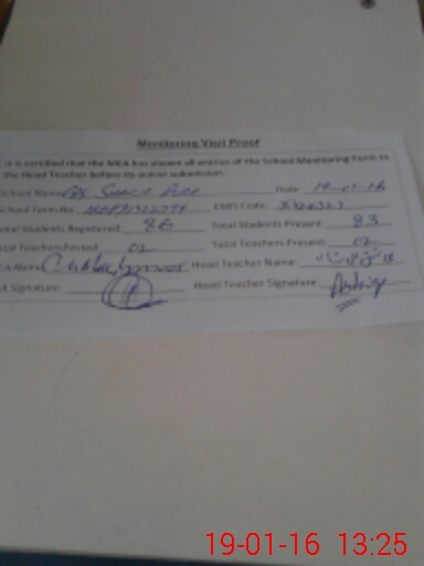 | Attendance Register | Head Teacher | MEA with School | Visit Proof |