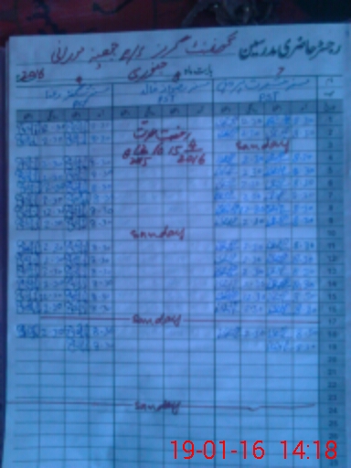 | CNIC | Full Name | Designation | R/C | Absence During Last Calender Month |