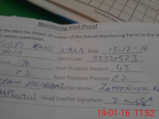 | Attendance Register | Head Teacher | MEA with School | Visit Proof |